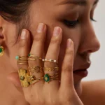 Pour un look bohème décontracté complet, portez la bague bohème chic avec une robe longue colorée et elle apportera une note glamour à votre ensemble. N’hésitez pas à l’associer à d’autres bagues pour un look plus marqué. Des accessoires tels qu’un collier avec une pierre de la même couleur, ou même un sac en osier accorderons votre bague au reste de votre tenue.