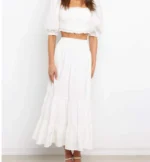 Déclinées en différentes couleurs cette jupe longue blanche boheme est la pièce maitresse d’une tenue estivale. Vous pouvez facilement l’accompagner d’un haut dos nu ou avec des manches bouffantes pour coller au style bohème.