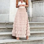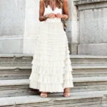 Accompagnez la jupe avec une paire de sandalettes pour accentuer le style bohème. Complétez votre look avec des accessoires tels que des bracelets ethniques et des boucles d’oreilles pendantes pour une tenue de mariage chic et décontractée.