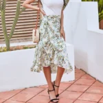 Un t-shirt près du corps, de préférence blanc, sera un indispensable pour mettre cette jupe en avant. Si vous préférez une allure chic et vintage, associez-la à une blouse agrémentée de dentelle à la place.