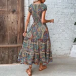 Ses motifs vintage imprimés reflètent une inspiration ethnique, transportant chaque femme dans un voyage stylistique unique. Disponible dans des grandes tailles, cette robe ethnique bohème, sa taille haute et sa coupe évasée sont intemporelles et subliment toutes les silhouettes.